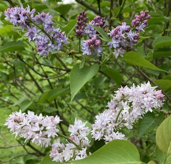 This was a really fun discovery this past year and just proves that one never knows when you might come across something new when looking at lilacs! One of my best lilac buds and I discovered a mutation within a specimen of 'Azurea Plena', the first cultivar in history documented to have double florets and utilized to produce the hyacinthiflora species. While 'Azurea Plena' exhibits bluish-colored florets, the sport was producing pale pink blooms. We flagged the specimen in order to be able to obtain scions of it this winter to ensure preservation of the mutation via grafting. Genetically different than the mother plant and producing radically different-colored blooms, we will watch the grafted specimens for the next couple of years to see if the mutation is stable and they consistently produce pale pink blooms. If so, I would like to propose calling this new development "Rosa Palida Plena"!