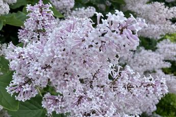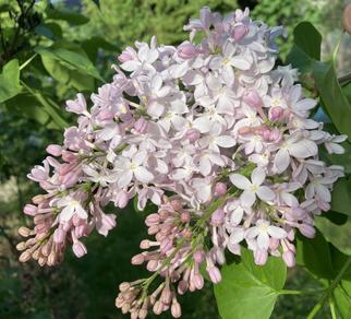 'Polly Hill' is one of the last lilacs introduced by an American propagator name Father John Fiala. Fiala wrote an incredible comprehensive book about lilacs which included his introductions and this one is so new that he didn't even mention it in his book. Needless to say, it is not very common. It has large pale pink florets that are produced on good-sized panicles, which make it a treat to see when it blooms!