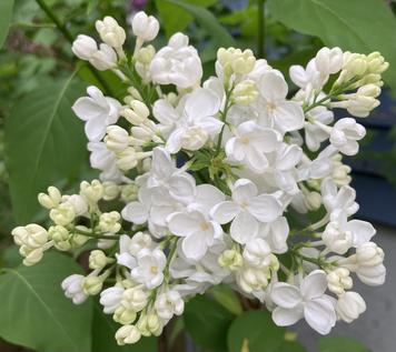 'Sister Justina' is a hyacinthiflora and was offered at a discounted price during one of the conventions held by the International Lilac Society. It is generally thought to be one of the better white hyacinthiflora in existence due to the shrub shape, the quality of the florets and preponderance of blooms!
